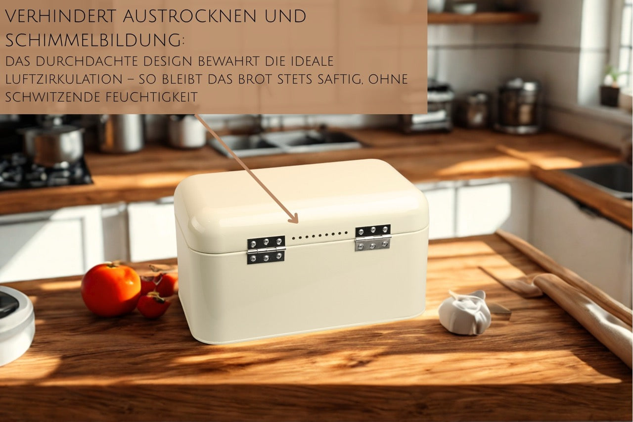 Halte dein Brot länger frisch mit der Breadvault Brotbox. Diese stilvolle Metallbox wurde entwickelt, um die Frische deines Brotes für bis zu 3 bis 4 Tage zu bewahren. Mit ihrer dezenten Farbe passt sie in jede Küche und sorgt dafür, dass dein Brot innen weich und außen knusprig bleibt. Verabschiede dich von hartem Brot und genieße jeden Tag frische Scheiben.Hauptmerkmale:- Hält Brot bis zu 4 Tage frisch und reduziert Lebensmittelverschwendung- Robuste Metallkonstruktion- Praktische Aufbewahrung für Brot, Brötchen und andere Backwaren- Dezentes Design, das in jede Küche passtBewahre Geschmack und Konsistenz deines Brotes länger mit Breadvault.