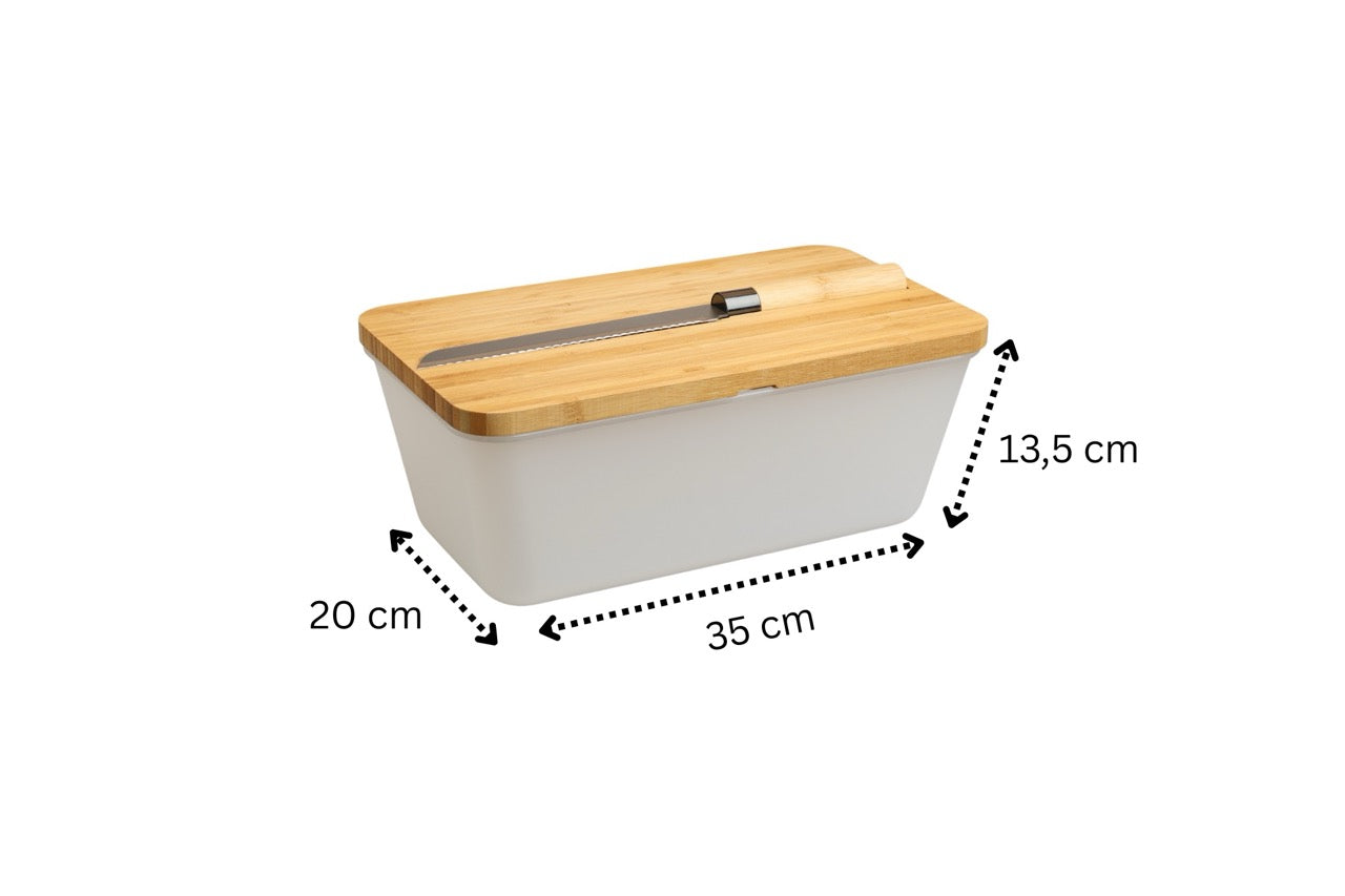 Der Airlock Brotkasten sorgt für längere Frische und Ordnung in deiner Küche. Der Deckel aus Bambus dient zugleich als Schneidebrett und ermöglicht ein praktisches Aufbewahren von Brot und Messer an einem Ort. Hergestellt aus robustem Melamin, hilft dieser Brotkasten, die Haltbarkeit deines Brots zu verlängern und alles Nötige griffbereit zu haben.Hauptmerkmale: – Frischeverlängerndes Design: Hält dein Brot länger frisch – Multifunktionaler Bambusdeckel: Nutze ihn auch als Schneidebrett – Inkl. Brotmesser: Praktisches Messer stets zur Hand – Komfortable Aufbewahrung: Brot, Brett und Messer an einem OrtMit dem Airlock Brotkasten genießt du frisches Brot und ein ordentliches Küchenarrangement.