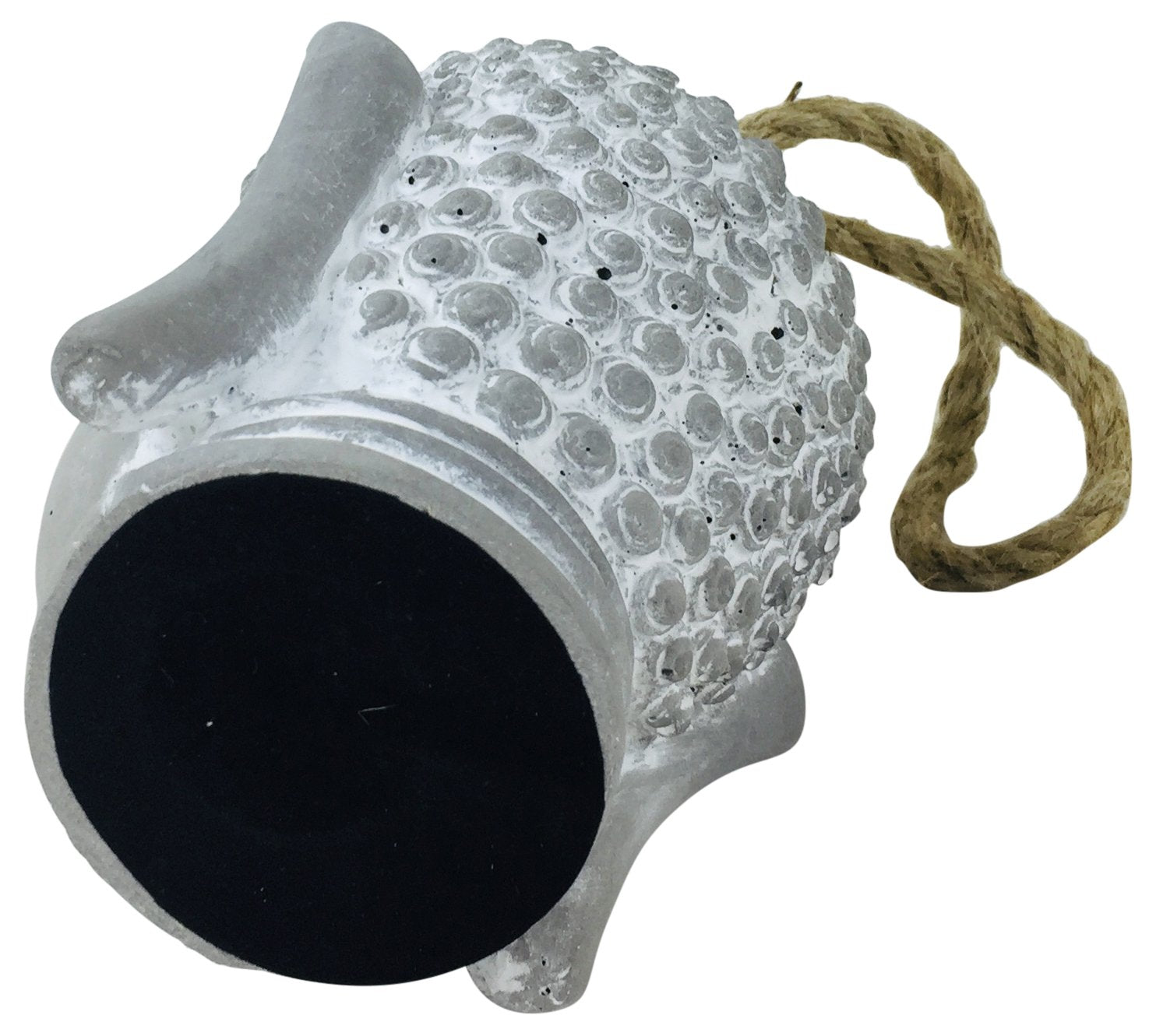 A detailed Buddha doorstop with a washed effect finish. The door stop itself is of high quality being made out of cement and weighing 1.8kg, making it perfect for keeping open even the largest of doors. The under side of the door stopped has a soft fabric finish. Measurements: W14cm D10cm H18cm. Rope length is 16.5cm. The base diameter is 7.5cm. SKU: BU0100
