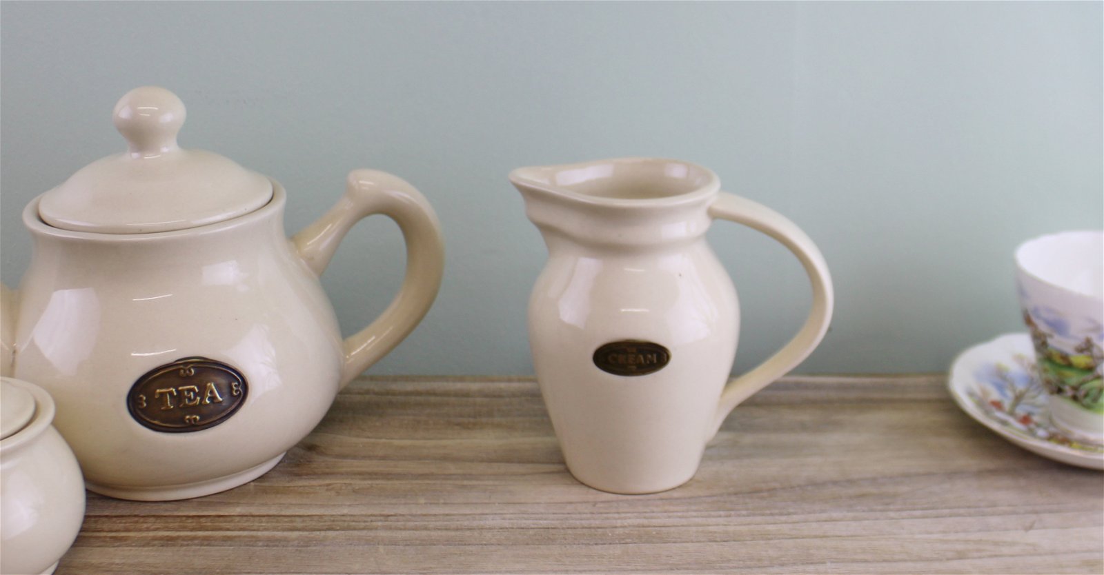 A high quality ceramic cream jug in a rustic cream colour, part of of our Country Cottage range. Cream jug holds 350ml of liquid. Top diameter of jug is 5cm. The cream jug is 100% ceramic with a metal Cream label fixed to the front. Co-ordinates with items in the Country Cottage range. Measurements: 7 x 12.5 x 12cm