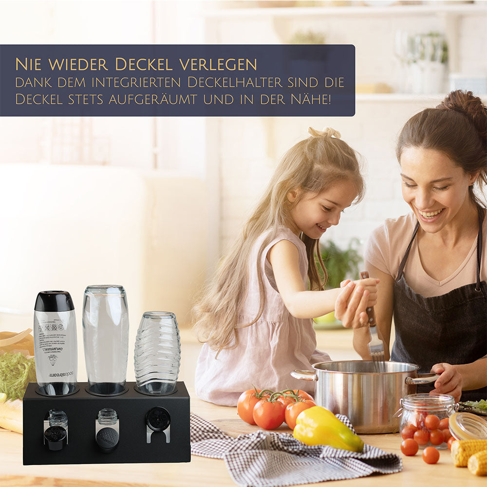 Mit dem Flaschenhalter Spaceport dockst du deine Trinkflaschen genau da an, wo sie hingehören. Dieser praktische Helfer aus pulverbeschichtetem Metall bietet Platz für bis zu drei Flaschen und schützt dank Gummirand Oberflächen vor Kratzern. Drei integrierte Öffnungen dienen zum Trocknen der Verschlussdeckel, während die herausnehmbare Abtropfschale aus Kunststoff überschüssiges Wasser auffängt. Perfekt geeignet für alle gängigen Flaschentypen, inklusive SodaStream-Flaschen, vereint der Spaceport Funktionalität und modernes Design.Hauptmerkmale: – Sicherer Halt für bis zu 3 Flaschen, kratzfreie Basis – Praktische Öffnungen zum Trocknen der Verschlussdeckel – Langlebiges, pulverbeschichtetes Metall – Entnehmbare Kunststoff-Auffangschale für einfache Reinigung – Gummirand für stabilen Stand und OberflächenschutzMit dem Flaschenhalter Spaceport bleibt deine Küche organisiert und deine Flaschen einsatzbereit immer bereit für die nächste Mission!