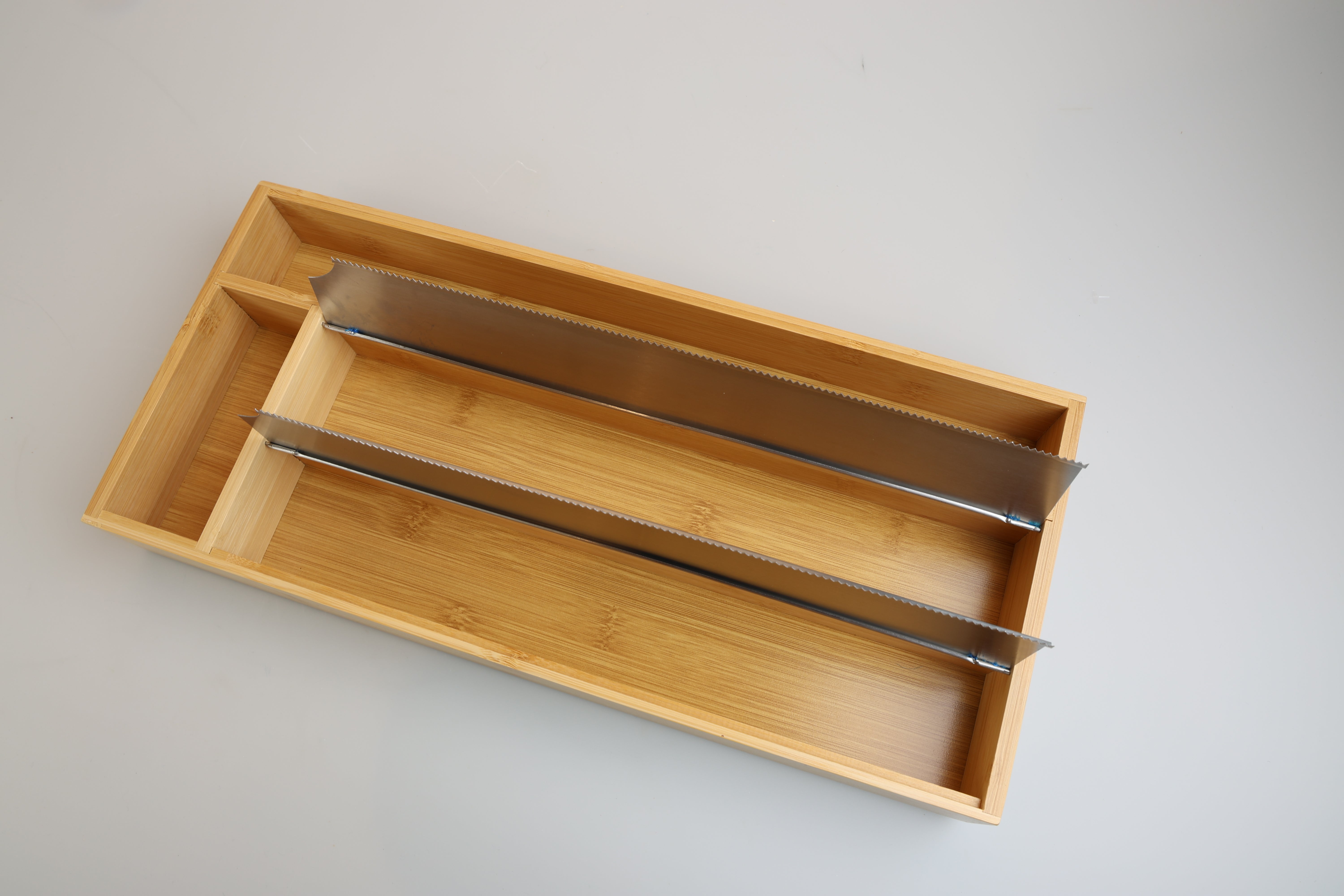 Verabschiede dich von überfüllten Schubladen mit dem Lunarfoil Folienspender. Die scharfen Kanten dieses Spenders, der für alle gängigen Größen von Folien geeignet ist, machen das Schneiden von Folien zu einem reibungslosen und mühelosen Prozess. Er ist aus langlebigem, umweltfreundlichem Bambus gefertigt und bietet die perfekte Kombination aus Funktionalität und Stil für eine gut organisierte Küche.Hauptmerkmale: – Scharfe Schneidekanten aus Edelstahl für einfaches Abschneiden von Folie – Passend für alle Standardgrößen – Mit Zusatzfach für Backpapier – Platz für Haushaltsgummis, Clips und vielem mehr – Hergestellt aus nachhaltigem Bambus, der eine natürliche Note in Ihren Raum bringtSorge für Ordnung in deinen Schubladen – Lunarfoil hilft dir, ohne viel Mühe organisiert zu bleiben.