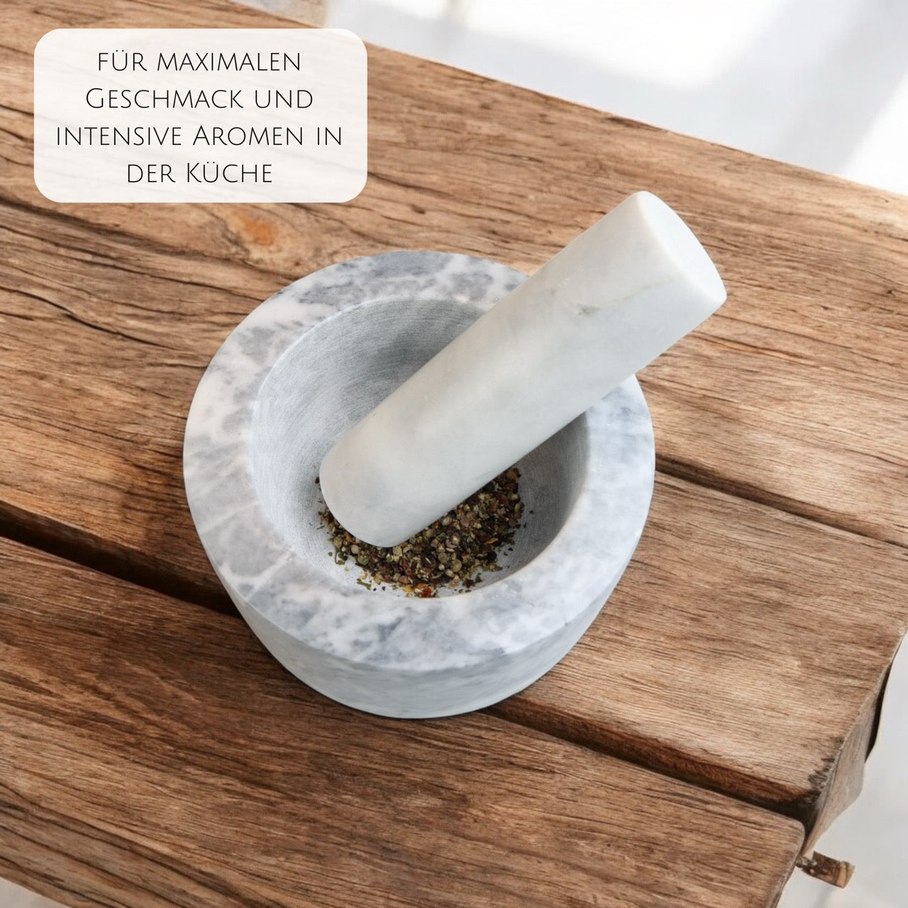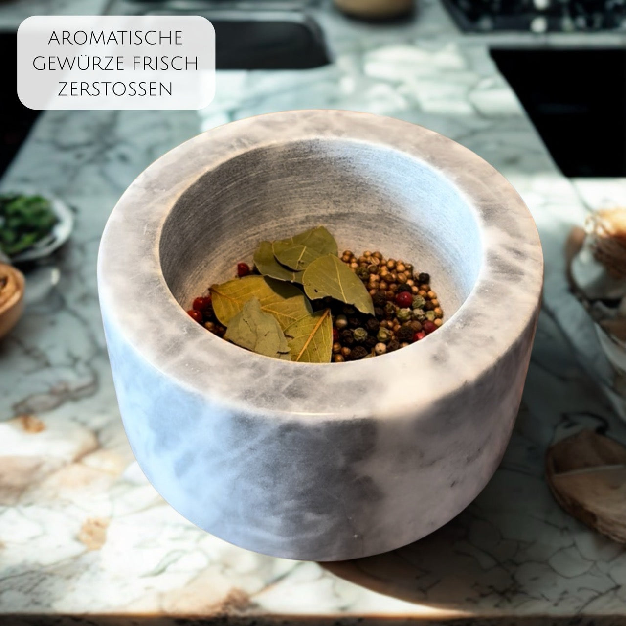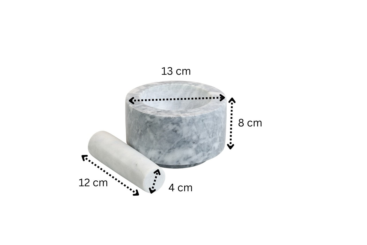 Verleihe deiner Küche einen Hauch von Eleganz mit dem Mörser Meteor. Aus echtem Marmor gefertigt, verbindet er edles Design mit außergewöhnlicher Funktionalität. Der schwere Mörser und Stößel sorgen für optimale Standfestigkeit und machen das Zerkleinern von Gewürzen, Kräutern und Nüssen mühelos. Egal, ob du eigene Marinaden, Pasten oder Gewürzmischungen herstellen möchtest – der geschmacksneutrale Marmor bewahrt die natürlichen Aromen deiner Zutaten.Hauptmerkmale: – Hochwertiges Material: Gefertigt aus langlebigem, ästhetischem Marmor – Stabile Basis: Schwerer Fuß für sicheren Halt beim Arbeiten – Aromaschutz: Nicht-poröse Oberfläche garantiert reine Geschmacksentfaltung – Vielseitig einsetzbar: Perfekt für Gewürzmischungen, Pasten, Marinaden und mehr – Maße: Mörser – D 13.0cm, H 8.0cm, Stößel – D 4.0cm, L 8.0cm Mit dem Mörser Meteor bringst du nicht nur Funktion, sondern auch Stil in deine Küche – für aromatische und meisterhafte Gerichte.