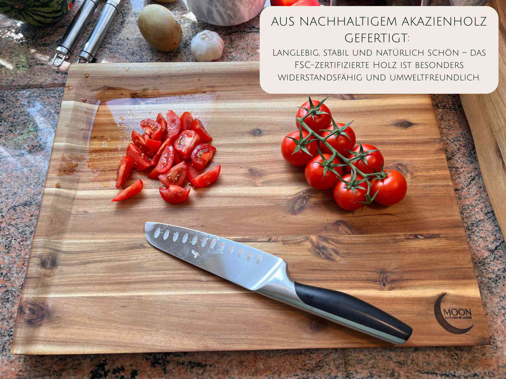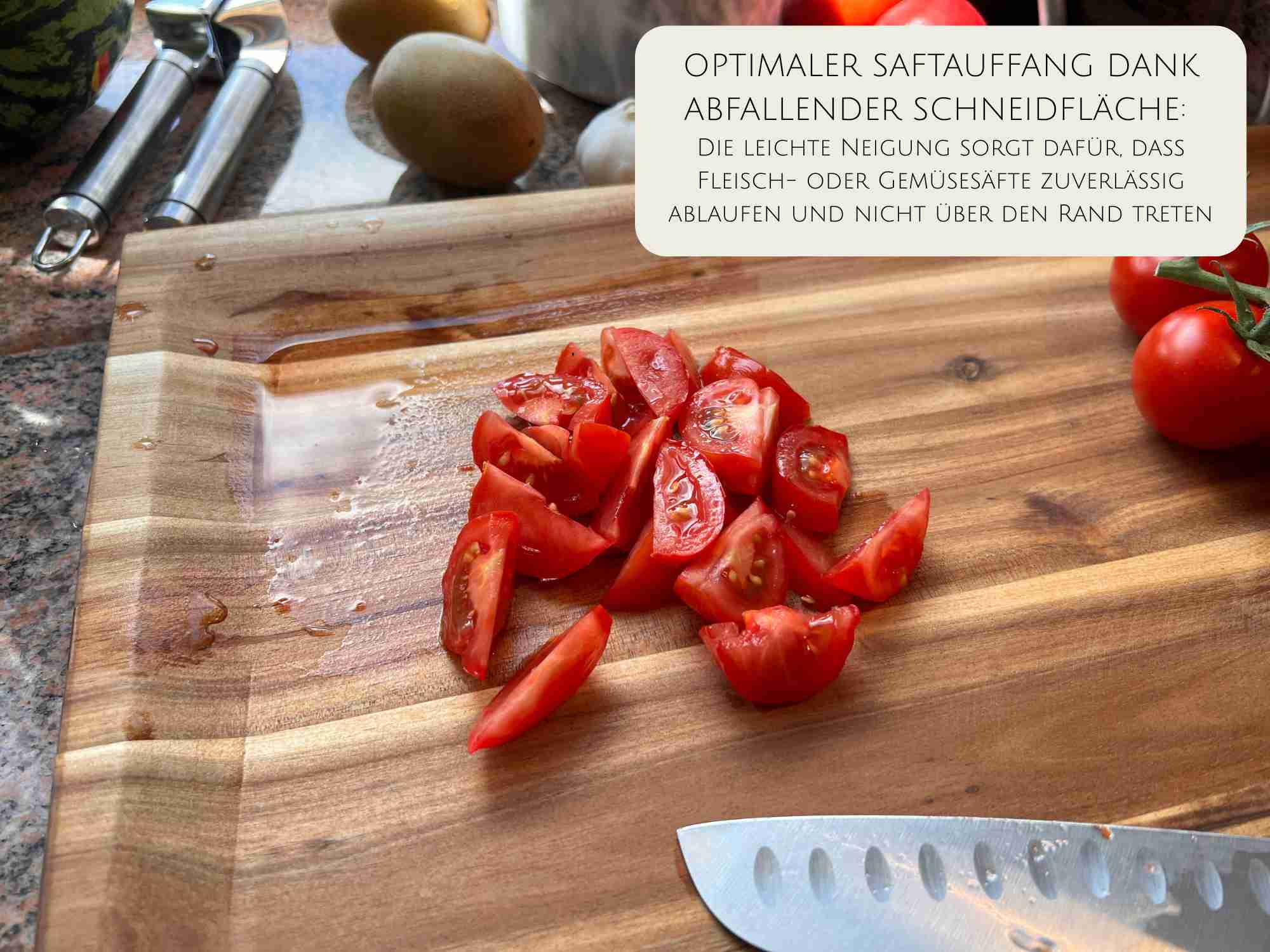 Das Schneidebrett Venus eignet sich ideal zum Schneiden und Servieren verschiedenster Lebensmittel wie Fleisch, Gemüse oder Nüsse. Die schräge Schneidefläche und die Saftsenke sorgen dafür, dass deine Arbeitsfläche stets sauber bleibt. Gefertigt aus nachhaltigem Akazienholz überzeugt es durch Robustheit und eine elegante Naturform.Hauptmerkmale: – Schräge Schneidefläche: Für präzises und müheloses Schneiden – Saftsenke: Fängt Flüssigkeiten auf und hält die Arbeitsfläche sauber – Elegante Naturform: Perfekt zum Schneiden und stilvollen Servieren – Nachhaltige Materialien: Aus umweltfreundlichem Akazienholz gefertigtKoche wie ein Profi mit dem Schneidebrett Venus.