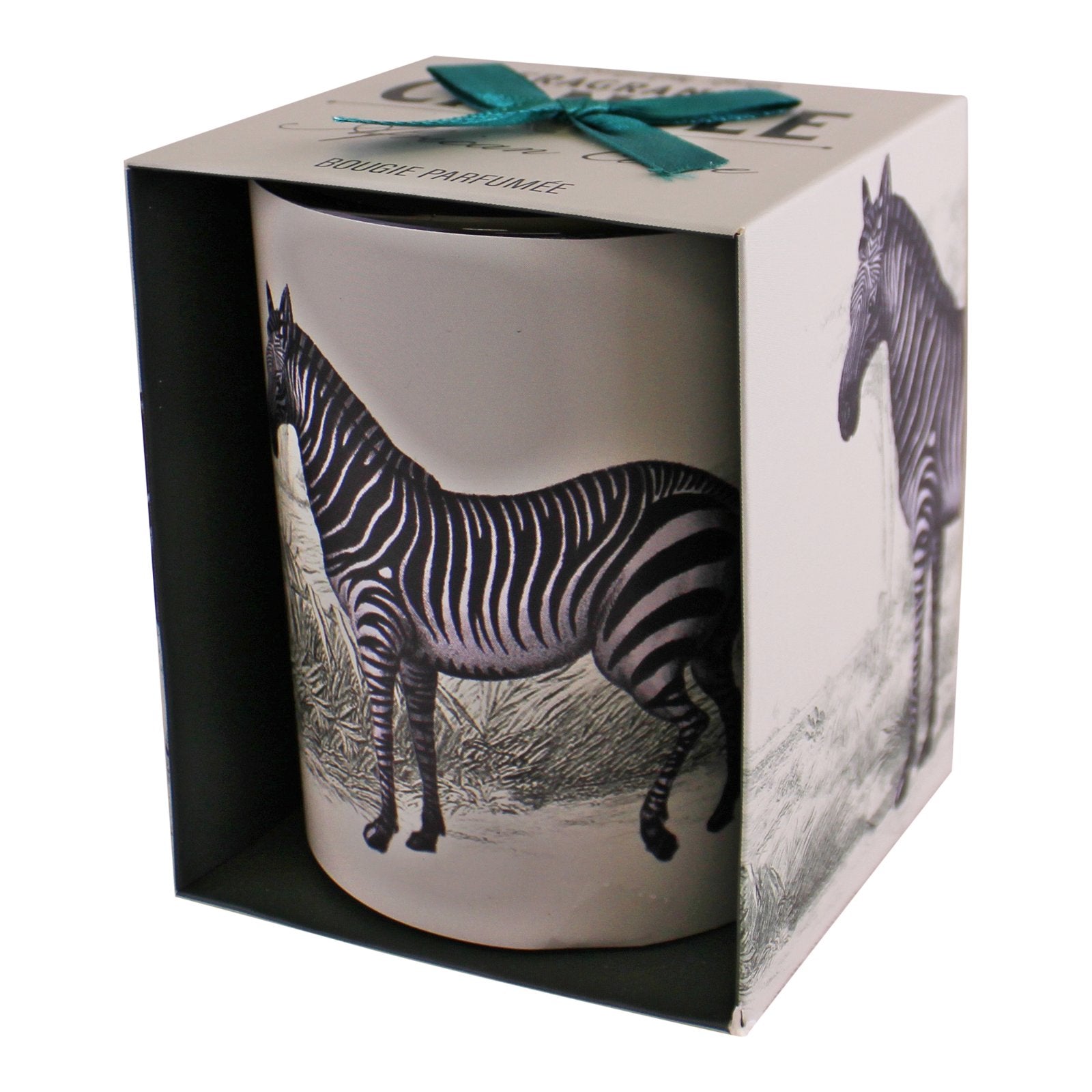 A beautiful set of 3 fragranced candles in a tropical safari design. Each candle has a different scent; the Elephant is African Rose, the Giraffe is African Lime and the Zebra is African Clove. Each candle is boxed. Each glass candlepot measures 8cm diameter and 10cm high. The candles are made from paraffin wax and have a single wick. Measurements: 8 x 10 x 24cm SKU: TJTS09