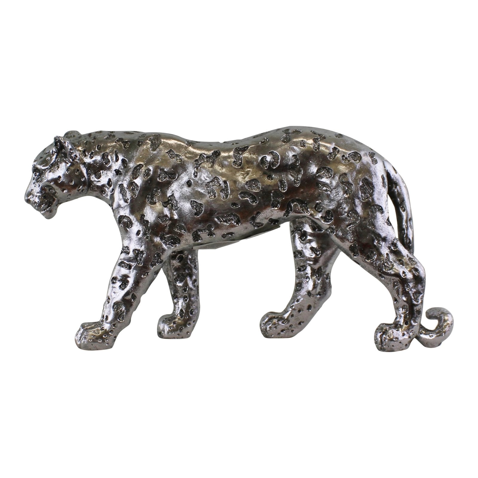 This Stunning Silver coloured Leopard will look fantastic in any home. Made of Polyresin and painted in silver with a glitter effect. Measurements: 7 x 14 x 17cm SKU: OR1310